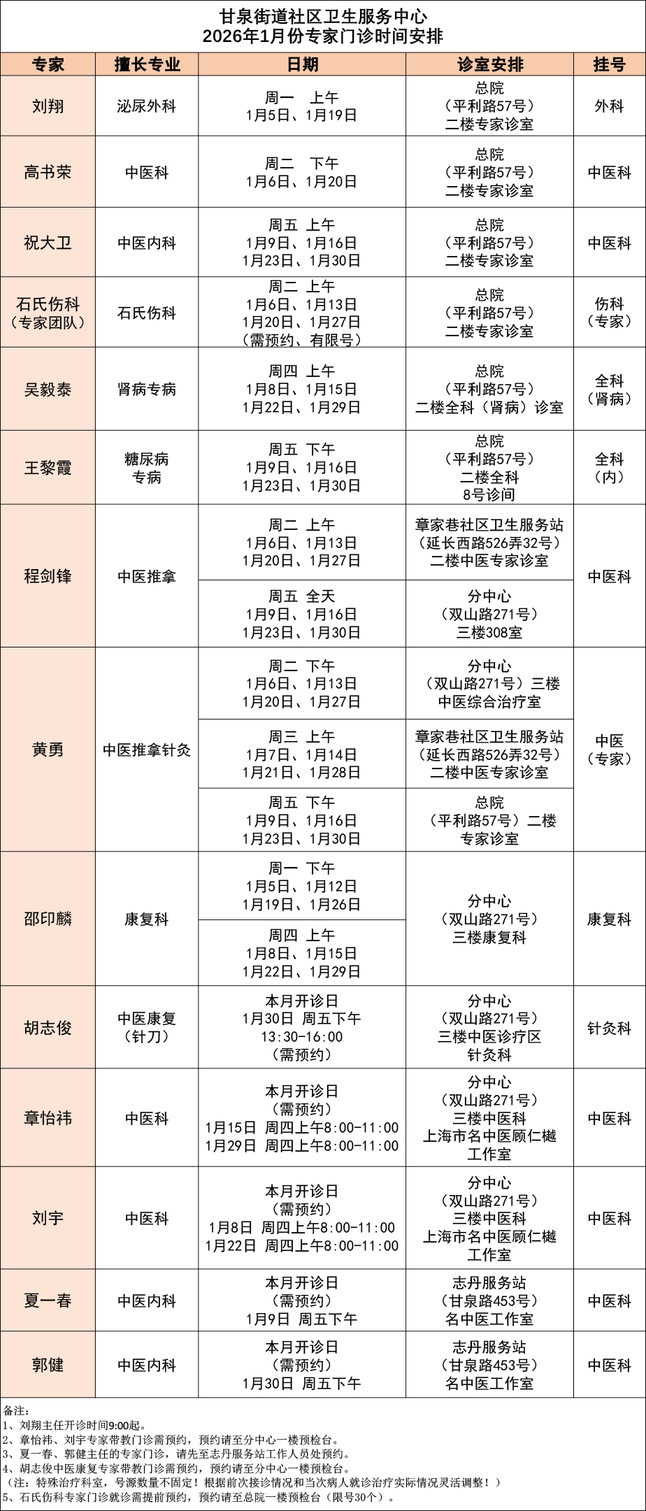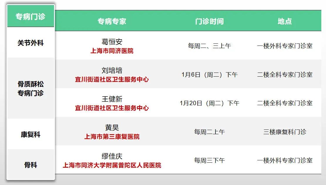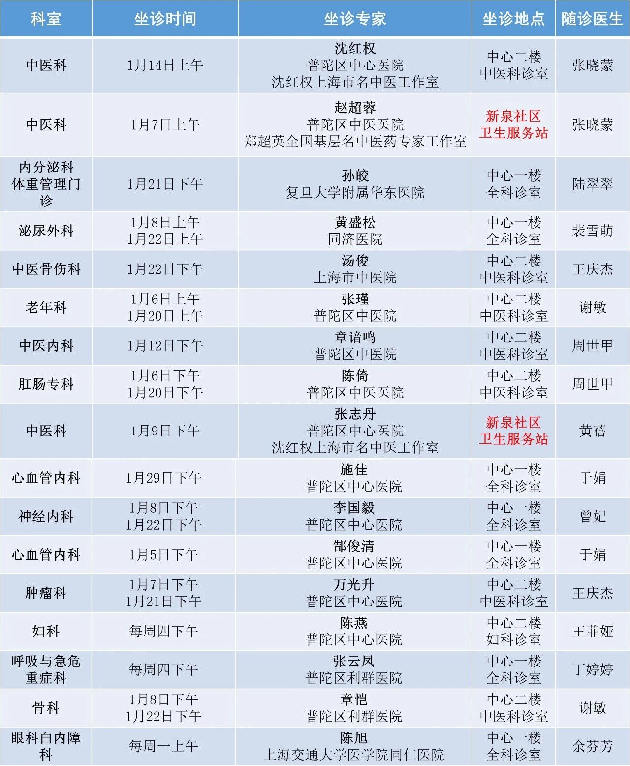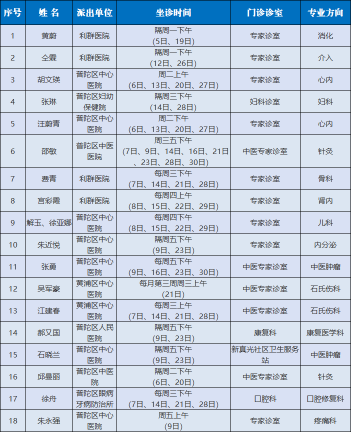 曹杨社卫全专联合门诊专家排班