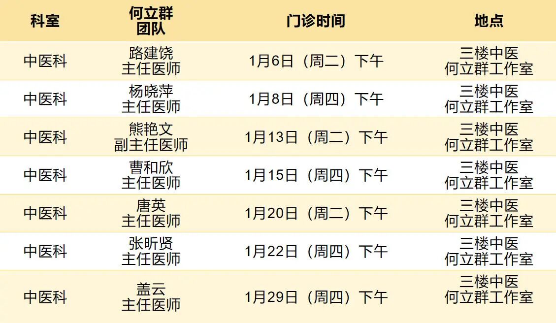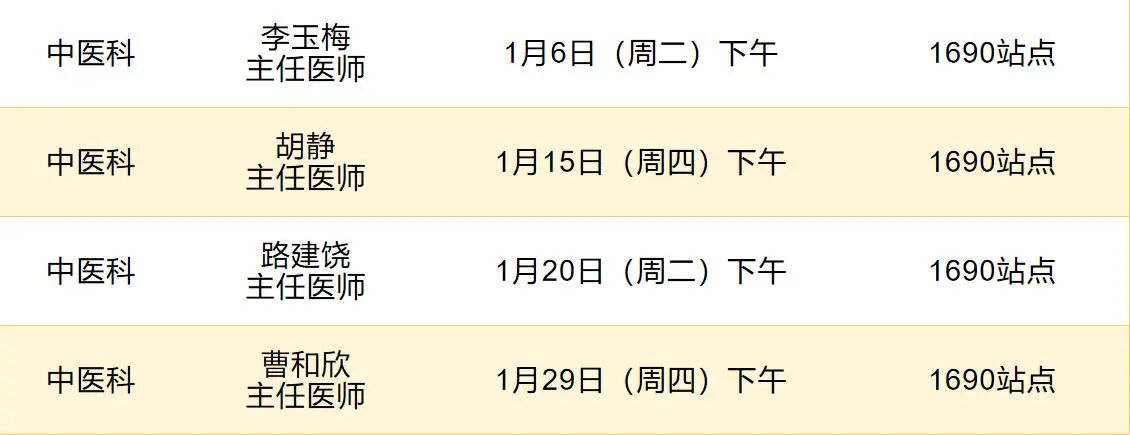 门诊时间安排——中医科