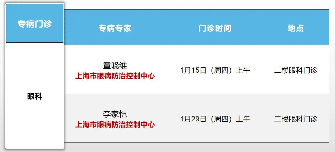 门诊时间安排——眼科