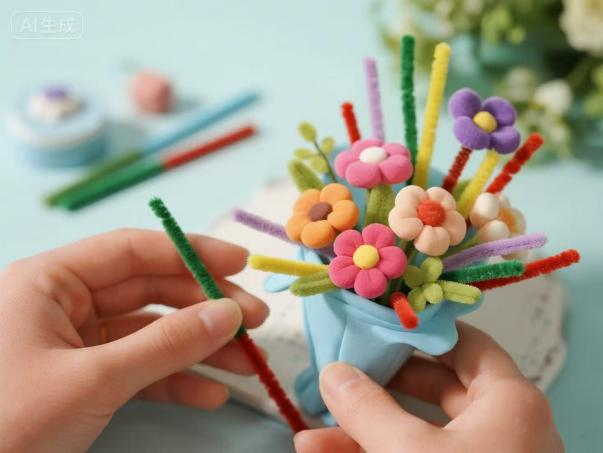 活动名称:美育大课堂:“柿柿如意”扭扭捧花束画制作