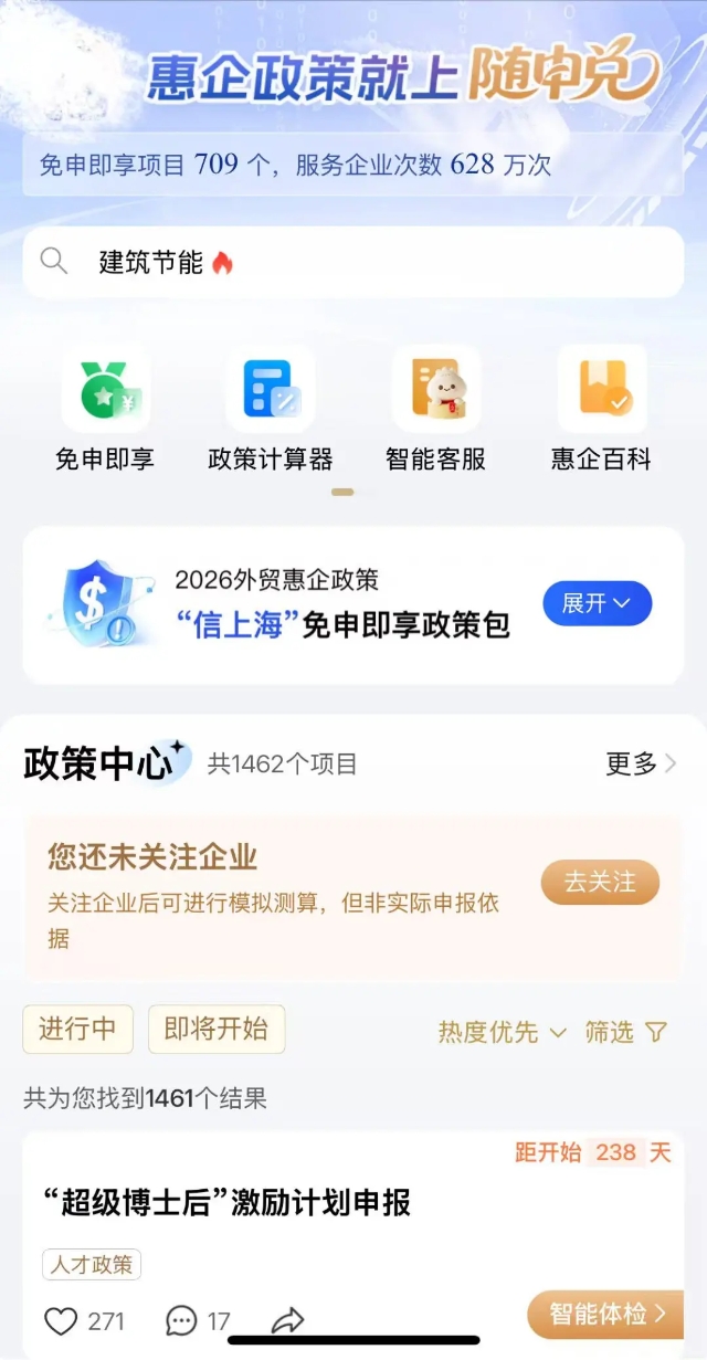 上海“随申办”全新上线惠企政策“随申兑”服务,可通过“随申办市民云”移动端(APP、微信小程序、支付宝小程序)查看相关惠企政策。