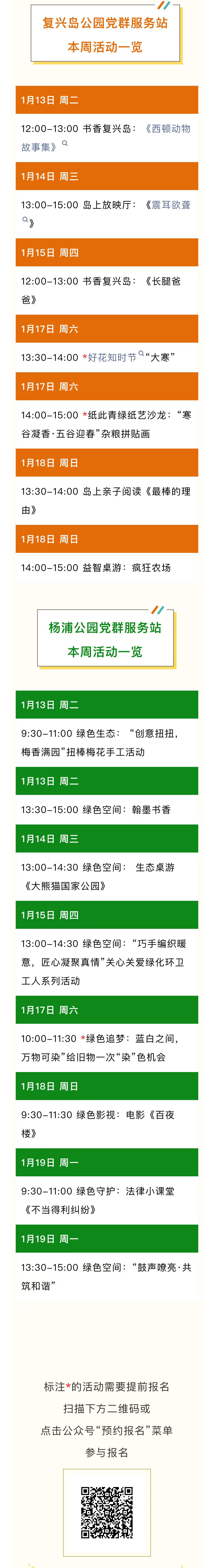 一月安暖,岁岁长安,欢迎来杨浦两个公园党群服务站参加精彩活动。