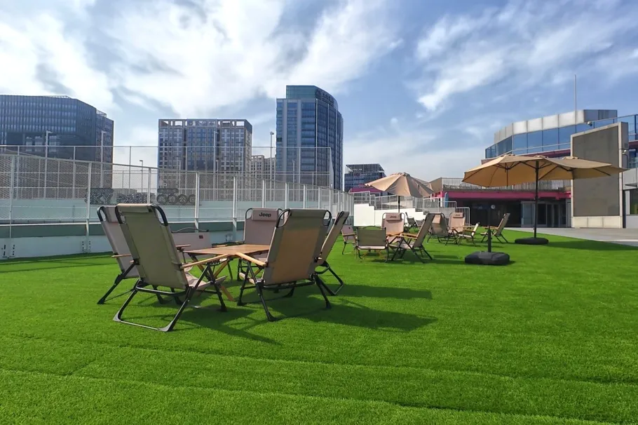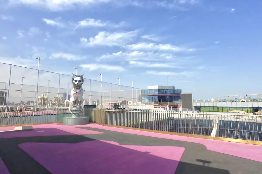 位于长风大悦城屋顶的露天公园,拥有粉色跑道、草坪和儿童乐园。这里视野开阔,像是城市上空的绿洲,特别适合拍摄记录日常的都市生活照。