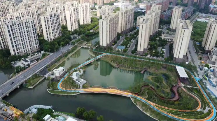 公园北区以桃浦湖为核心,以桃花为主题植物,延续桃浦河历史记忆,与南区共同形成“一环、两区、八景”的景观结构。这座以“艺术水岸,活力桃源”为设计主题,集生态涵养、休闲游憩、文化体验等功能于一体的城市绿色空间,将为上海西北门户再添一处美景。