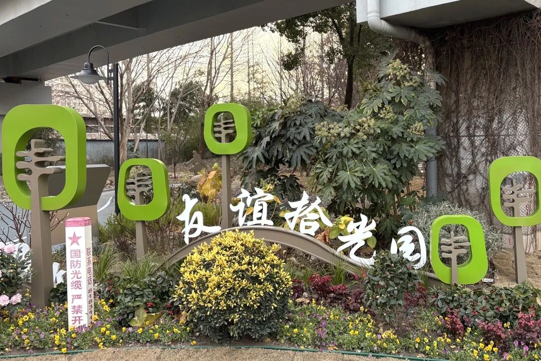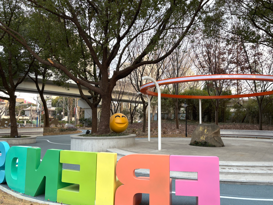 友谊拾光园位于宝山区友谊路街道,友谊路同济路西南角,占地约2000平方米,周边以居民区与商务园区为主,是一处融合休闲与情感体验的口袋公园。