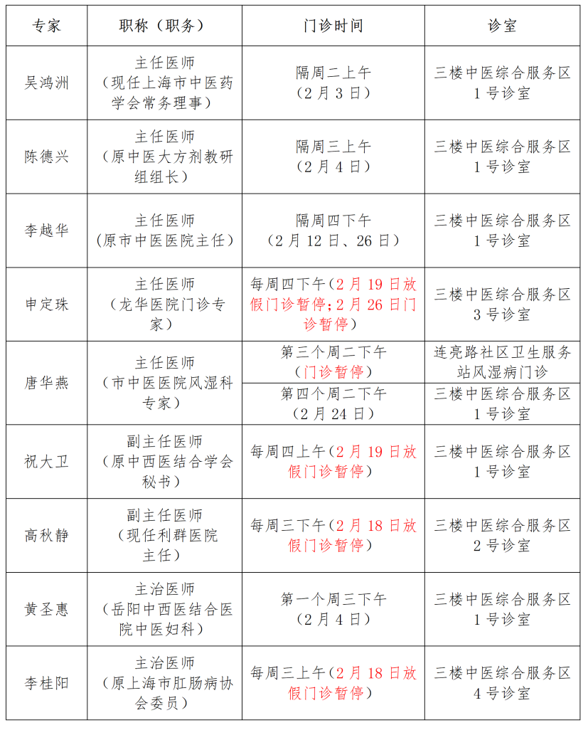2月中医专家介绍