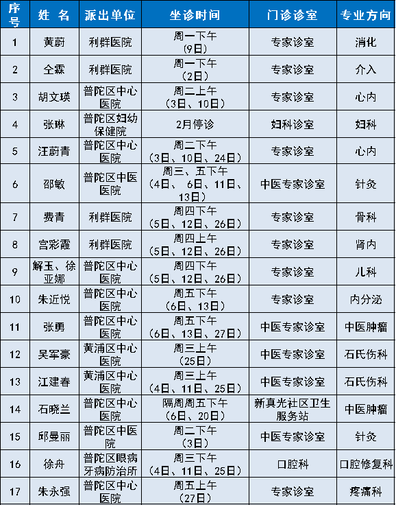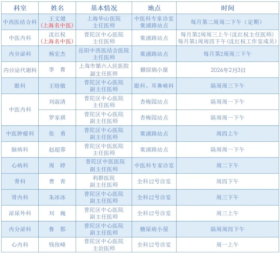 “家门口”就能看名医!普陀2026年2月专家门诊安排来啦 2026-02-04 来源:普陀区人民政府
