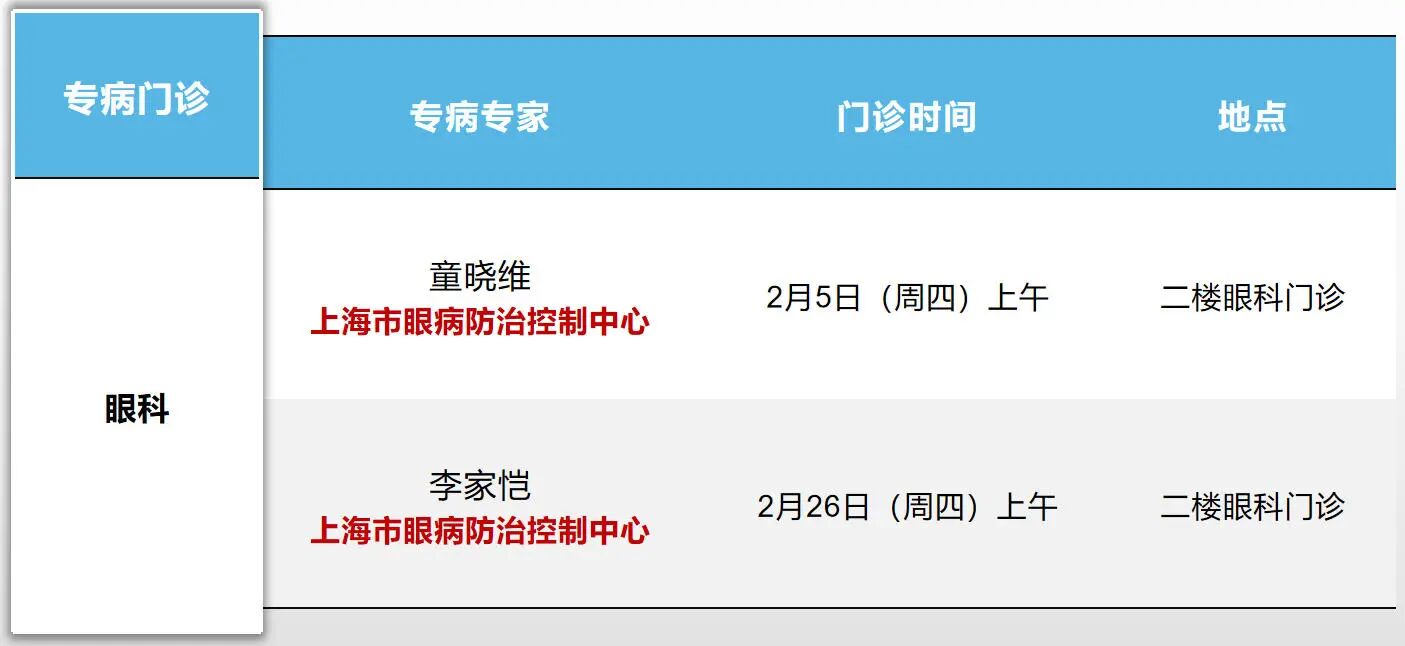 门诊时间安排——眼科