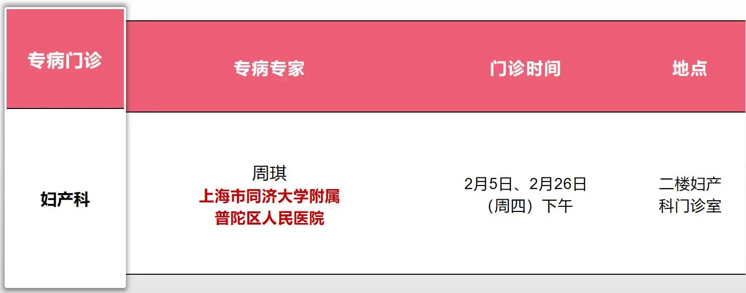 门诊时间安排——妇产科