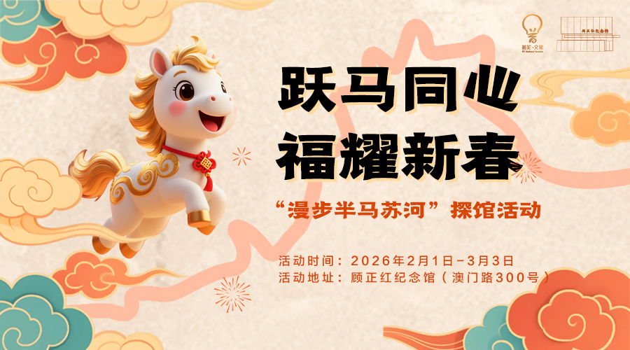 新春佳节来顾正红纪念馆,把红色工运故事装进新年。领取任务卡,跟随“苏河印记心正红”志愿者穿梭展厅,闯关答题;可以领福字、盖馆章,打卡新春布置,把苏河故事与2026场馆新春独家回忆带回家!