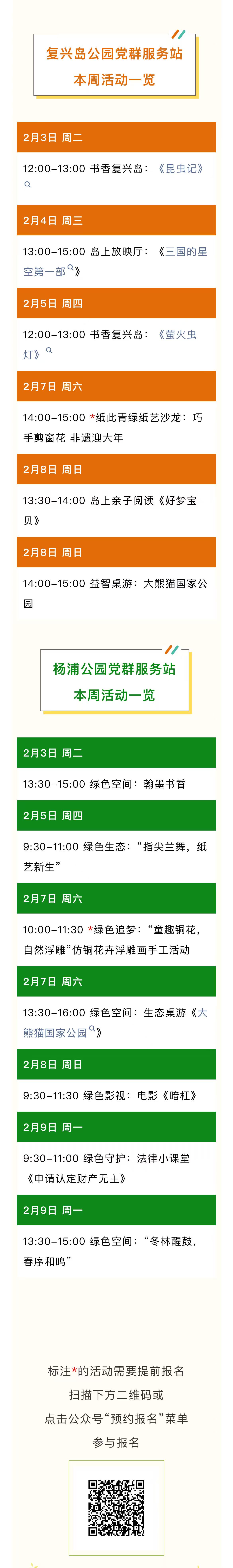 二月好事成双,欢迎来杨浦两个公园党群服务站参加精彩活动。