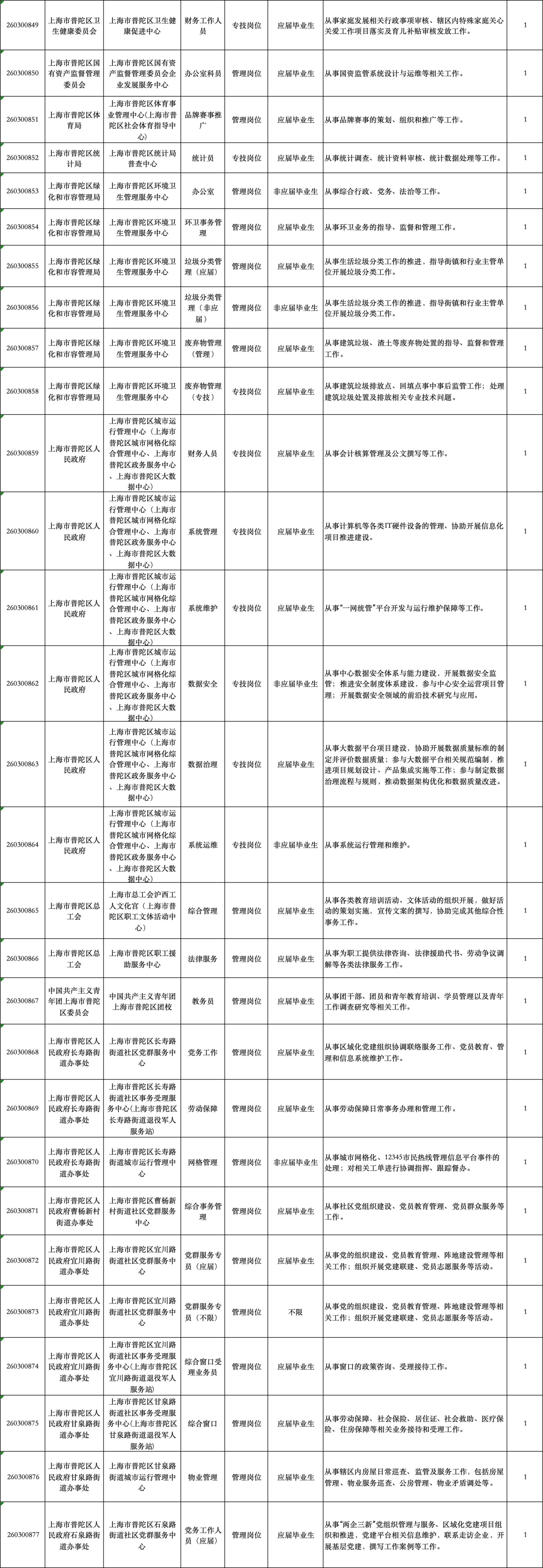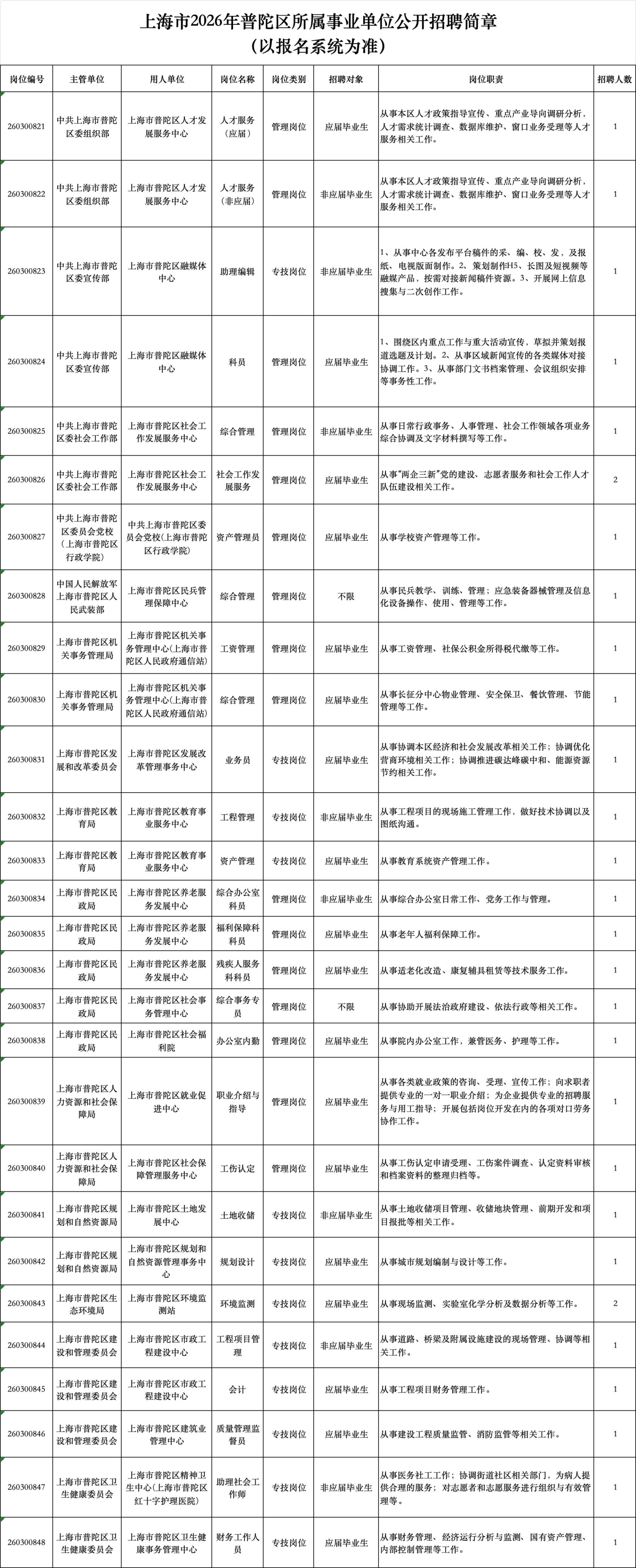 上海市2026年事业单位公开招聘启动,普陀区招聘75人!来看看有哪些岗位吧!