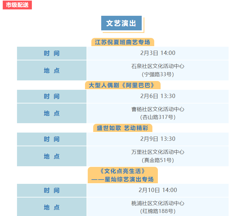 普陀区2026年2月文化配送活动(市级配送)预告来啦!