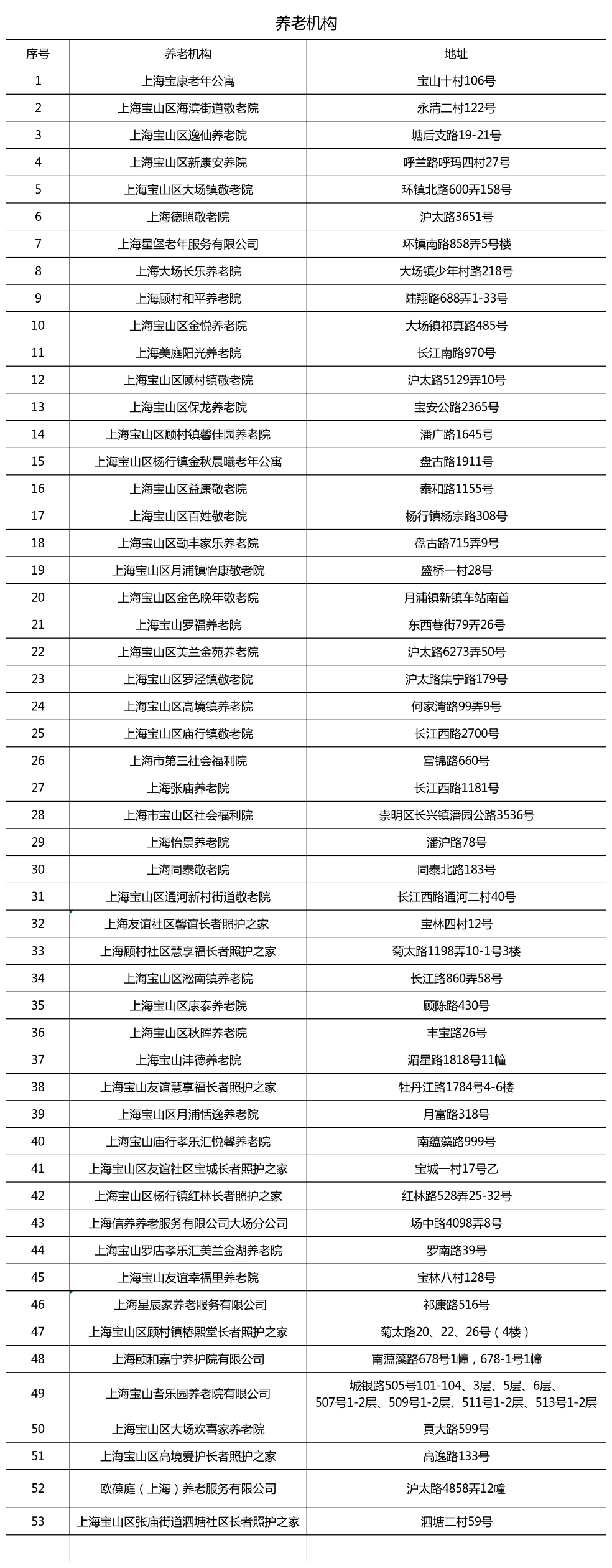 根据国家及本市定点医药机构协议管理的有关规定,经市、区两级医保经办机构组织评估并验收通过,近日,宝山区新增1家长护险定点养老机构,具体如下: