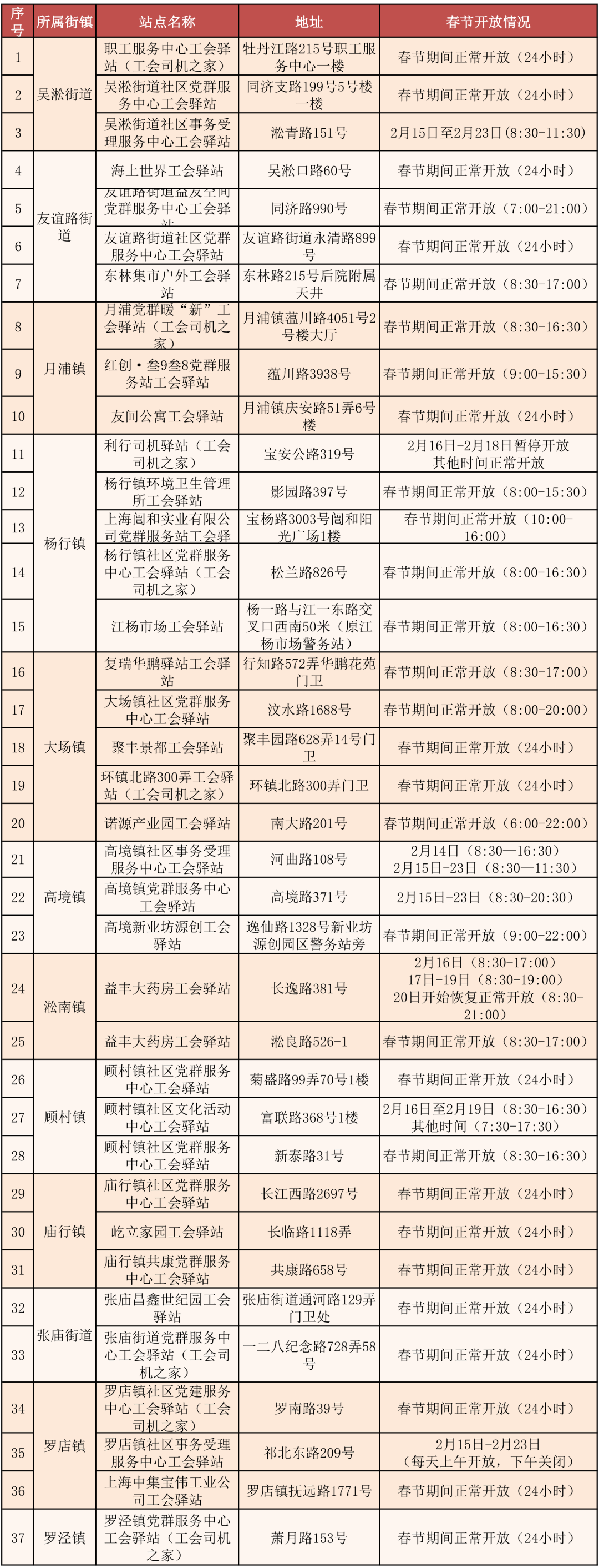 为让广大户外劳动者在马年春节期间感受到家的温暖,切实解决他们户外值守的不便,宝山37家工会驿站(户外职工爱心接力站)春节期间“不打烊、不缺位、暖不停”,以贴心服务为户外劳动者护航,为新春添暖意。