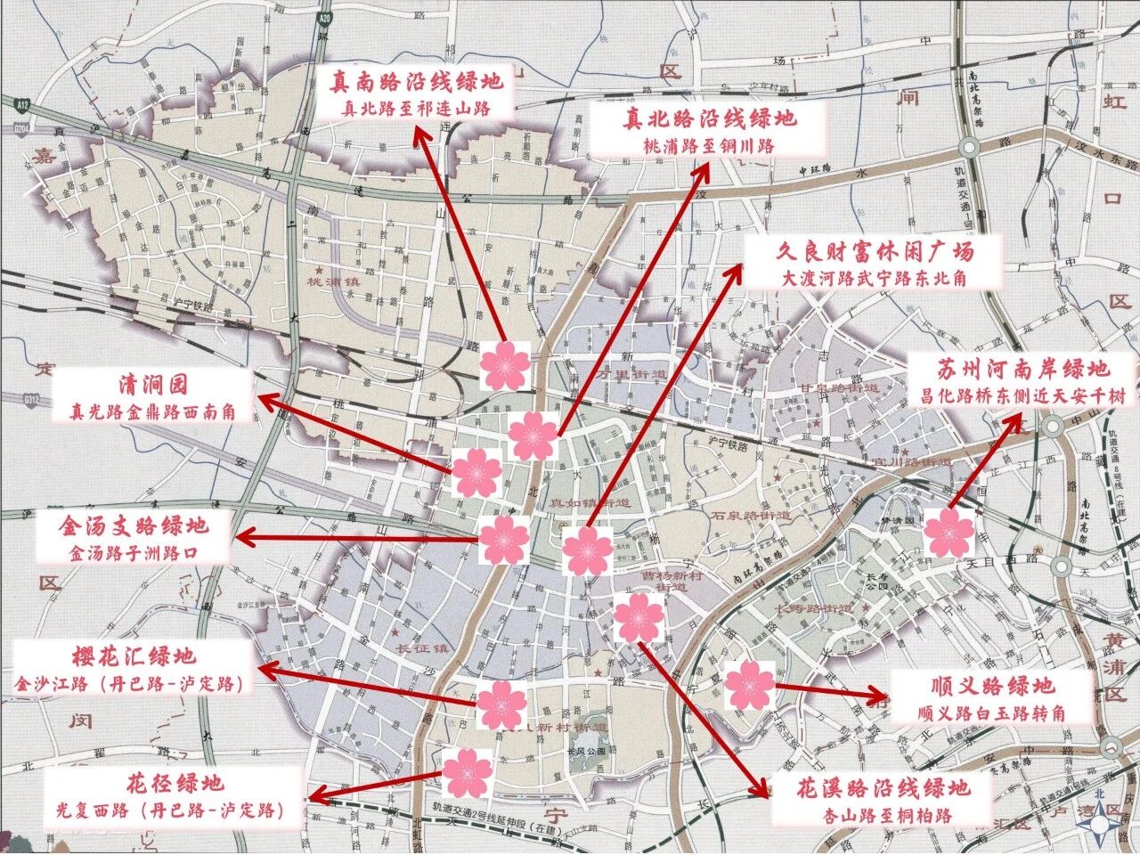 普陀区绿地樱花地图