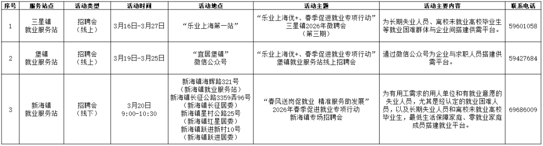活动内容:2026年春季促进就业专项行动新浜镇专场招聘会