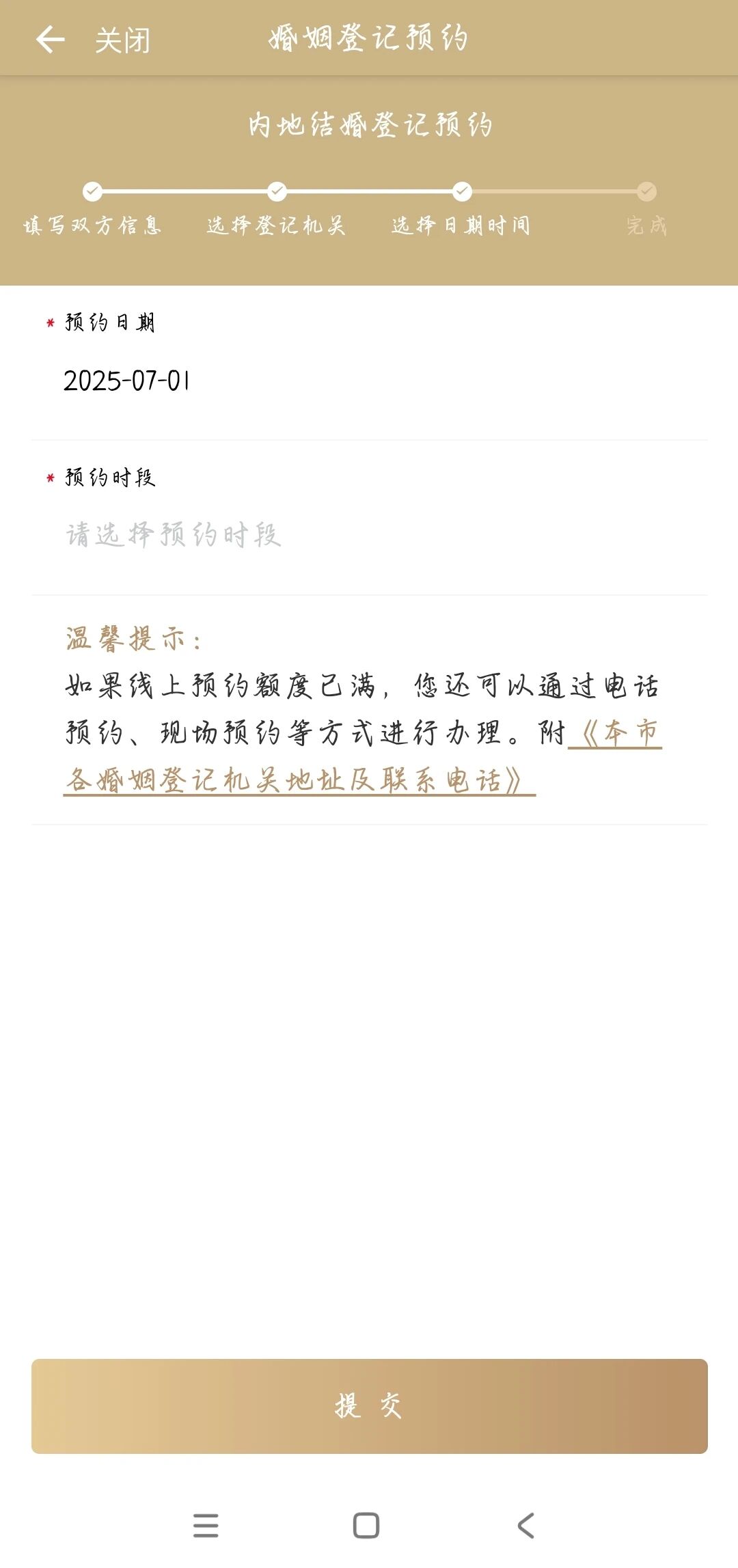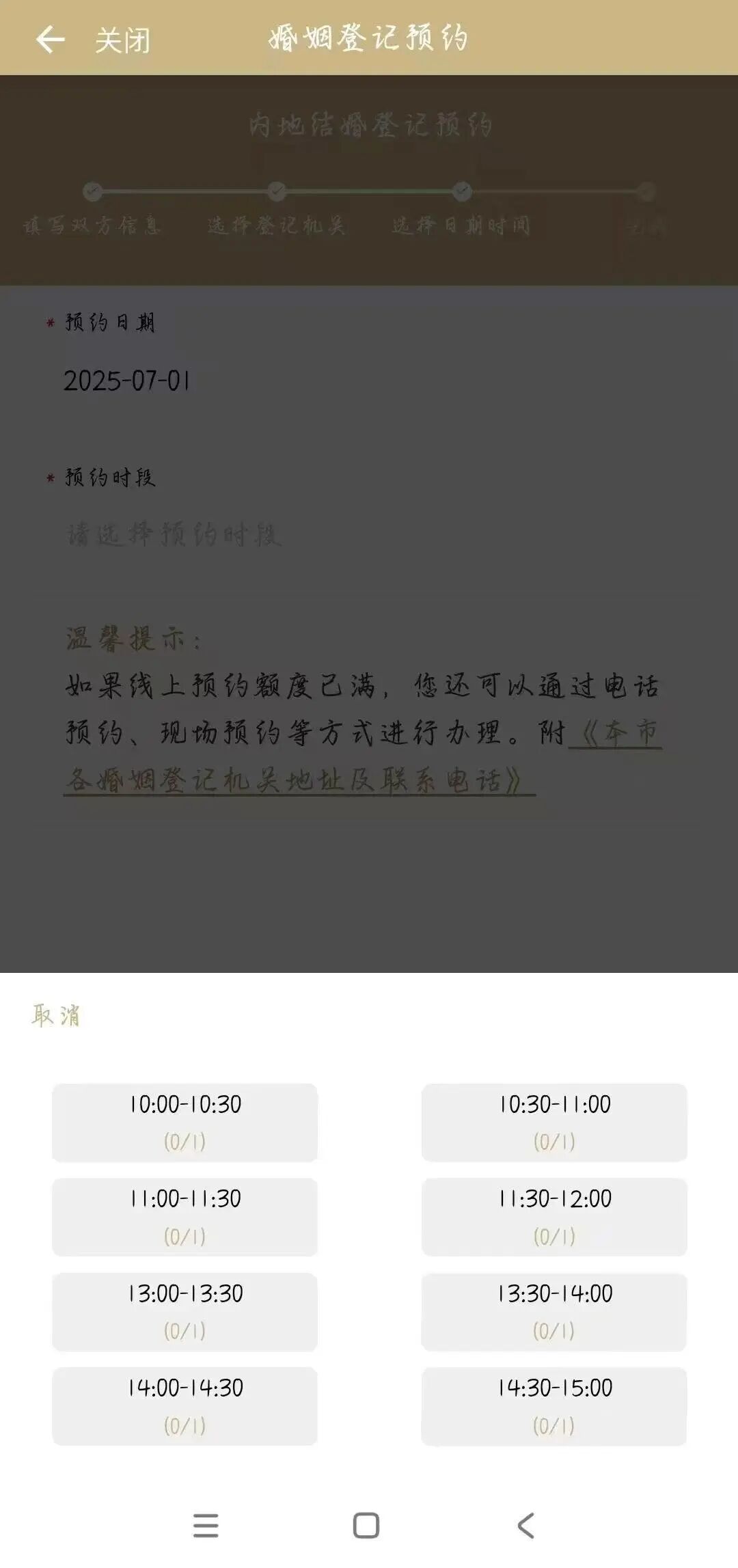 在“随申办”App或随申办小程序搜索“婚姻登记预约”,选择“普陀区婚姻收养登记中心(“环球云端”特约点)”进行预约(4月1日上午9点开启预约,需至少提前1个工作日预约,当天限约15对),操作如下: