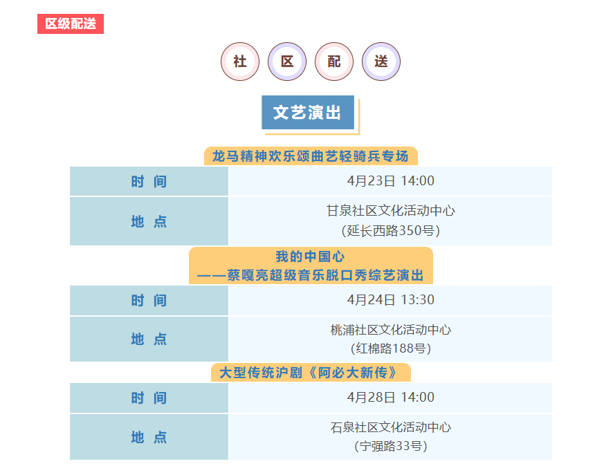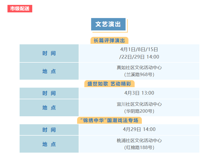普陀区4月文化配送活动预告(市级配送、区级配送)来啦!