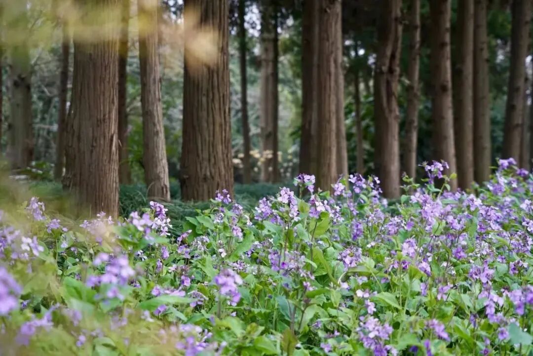 四月的漕泾郊野公园,已变成了花的海洋。水窠的滩漾花岸正被成片的二月兰覆盖,细小的花瓣层层叠叠,铺成了浪漫的紫色花毯,随手一拍都是大片。