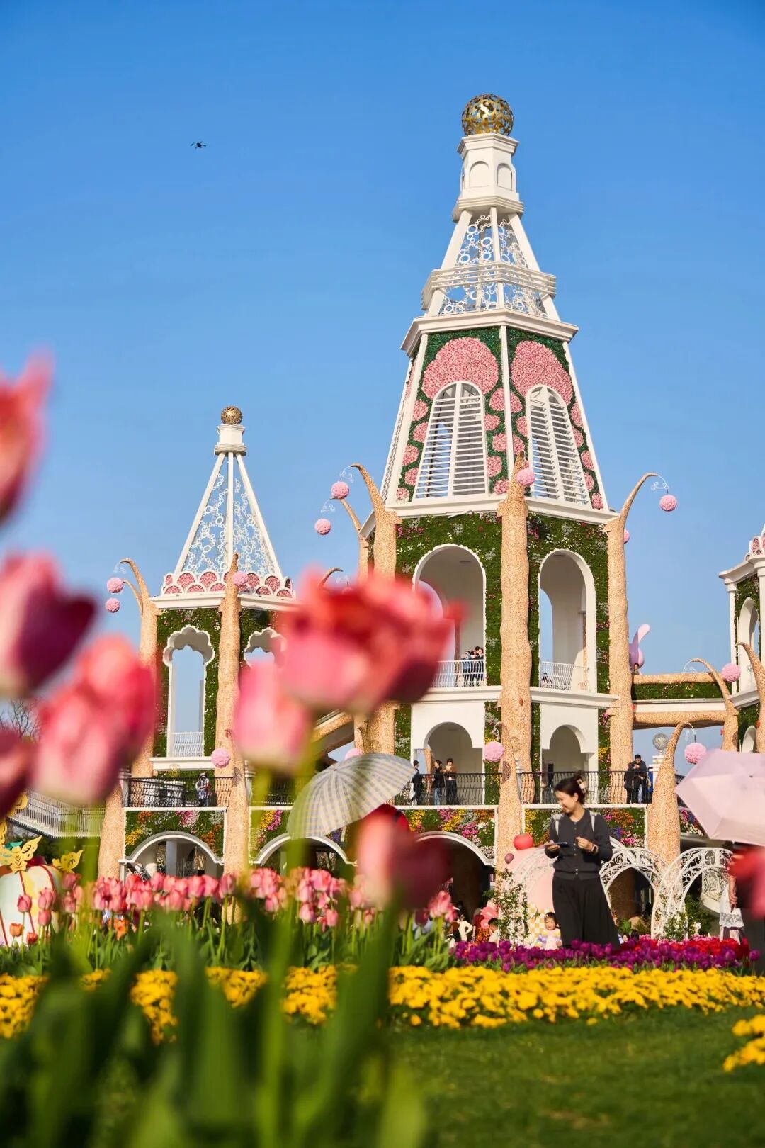 浦江郊野公园是上海近郊踏青首选,30余万株郁金香、月季盛放,巨型玫瑰墙、B612星球装置与花精灵城堡构成童话场景,拍照超出片。