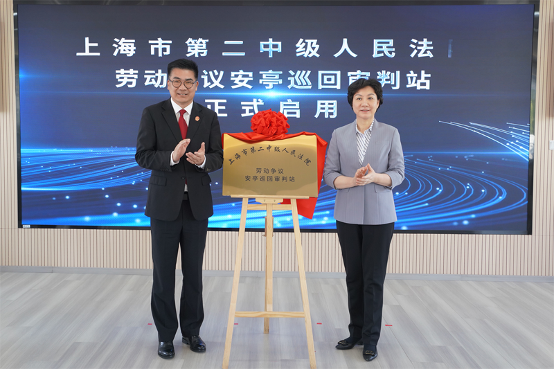 为进一步深化裁审衔接工作机制,4月28日,上海市人力资源和社会保障局与上海市第二中级人民法院共同举办劳动争议巡回审判站揭牌暨典型案例发布会。上海市人社局党组书记、局长杨佳瑛,上海二中院党组书记、院长郭伟清共同为“上海市第二中级人民法院劳动争议安亭巡回审判站”揭牌并讲话。