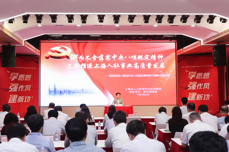 杨佳瑛指出,加强和改进作风建设是推动人社事业行稳致远的根本保证,要在锤炼坚强作风、锻造过硬队伍上走在前、作表率。要紧扣增强党性这一根本问题,坚持不懈用习近平新时代中国特色社会主义思想凝心铸魂,深化“第一议题”制度,及时跟进学习党的创新理论,为转变作风注入强大精神动力。要紧盯为民服务这一核心问题,秉承“人社事业为人民”价值导向,守牢人社政策服务的“民生底色”。要紧抓领导干部这一关键少数,持续深化“人社局长走流程”党建品牌建设,推动上海人社系统各级领导干部常态化“走流程、坐窗口、云服务、下基层”,带动广大党员干部纠“四风”、改作风、树新风。