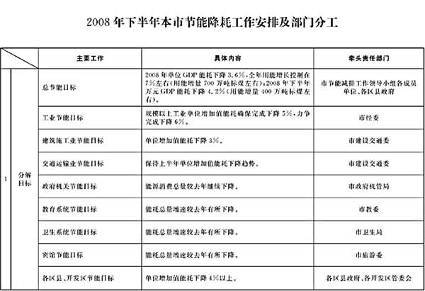 市发展改革委制订的《2008年下半年本市节能降耗工作安排及部门分工》(以下简称《部门分工》)已经市政府同意,现转发给你们,请认真贯彻执行。