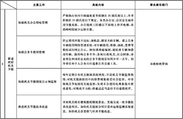 今年是实现“十一五”节能降耗约束性目标的关键一年。从上半年全市节能降耗形势看,虽然各项工作取得了一定进展,但完成全年目标仍十分严峻。各区县、各部门和各单位要从深入贯彻落实科学发展观,加快转变经济发展方式,促进经济又好又快发展的高度,充分认识做好下半年节能降耗工作的重要性和紧迫性,按照市委九届四次会议和全市党政负责干部会议的要求,下更大决心,花更大力气,继续打好节能降耗攻坚战。要把做好下半年节能降耗工作放在更加突出的位置,明确任务、落实责任,突出重点、增加投入,加强领导、强化考核。要广泛宣传动员,充分发挥机关示范表率作用,发挥舆论监督作用,努力营造全社会参与、支持、监督节能降耗工作的良好氛围,努力完成全年单位生产总值能耗下降36%的目标。