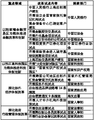 表四 国家有关部门已在浦东开展的主要改革试点项目
