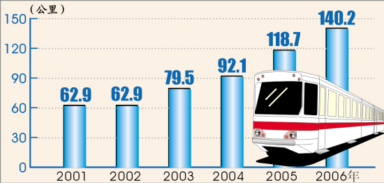 促进城市交通便捷化。按照“十一五”规划提出的至2010年基本建成轨道交通基本网络的目标,全面建设轨道交通6号线、7号线、8号线、9号线、10号线、11号线等,在建规模超过240公里。实施公交优先战略,进一步完善轨道交通、地面公交等换乘优惠政策。建设新建路、人民路等越江工程,实施河南路等道路改造,继续完善交通排堵保畅措施。