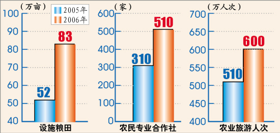 加快形成都市现代农业生产和流通服务体系。加强农业基础设施建设,建设100万亩设施粮田和30万亩设施菜地。启动金山区现代农业园区等基本农田保护示范区建设。建设西郊农产品交易中心,为农产品交易、展示、物流等提供服务。加强粮食储备和流通体系建设,实施外高桥粮食储备库及码头设施项目,确保全市粮食安全。