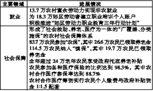 表二 本市郊区农村完善就业和社会保障体系进展情况