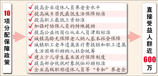 社会保障覆盖面进一步扩大。结合贯彻国家收入分配制度改革及相关配套政策,出台了10项分配保障政策,直接受益人群近600万(见图10)。救助患大病重病的困难人员6.3万人次。来沪从业人员综合保险参保人数达到278.7万人。新增廉租住房受益家庭4323户。