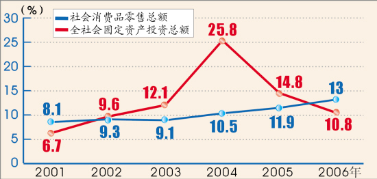 消费结构升级效应进一步显现。社会消费品零售总额完成3360.4亿元,增长13%,增幅超过投资,为1998年以来最高(见图4)。餐饮、家居、汽车和通讯消费继续成为消费热点。服务性消费支出占城市居民家庭消费支出比重达到32.8%。
