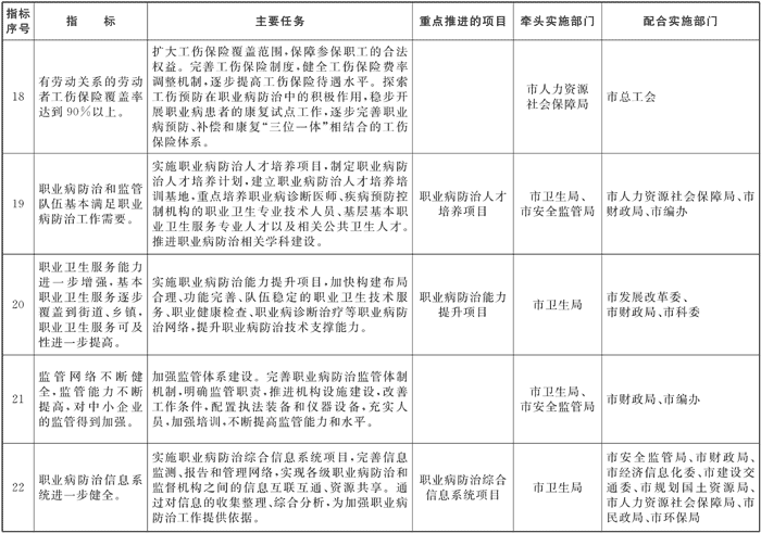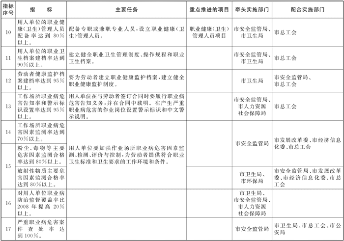 附件:上海市职业病防治规划(2010-2015年)指标、任务分解表