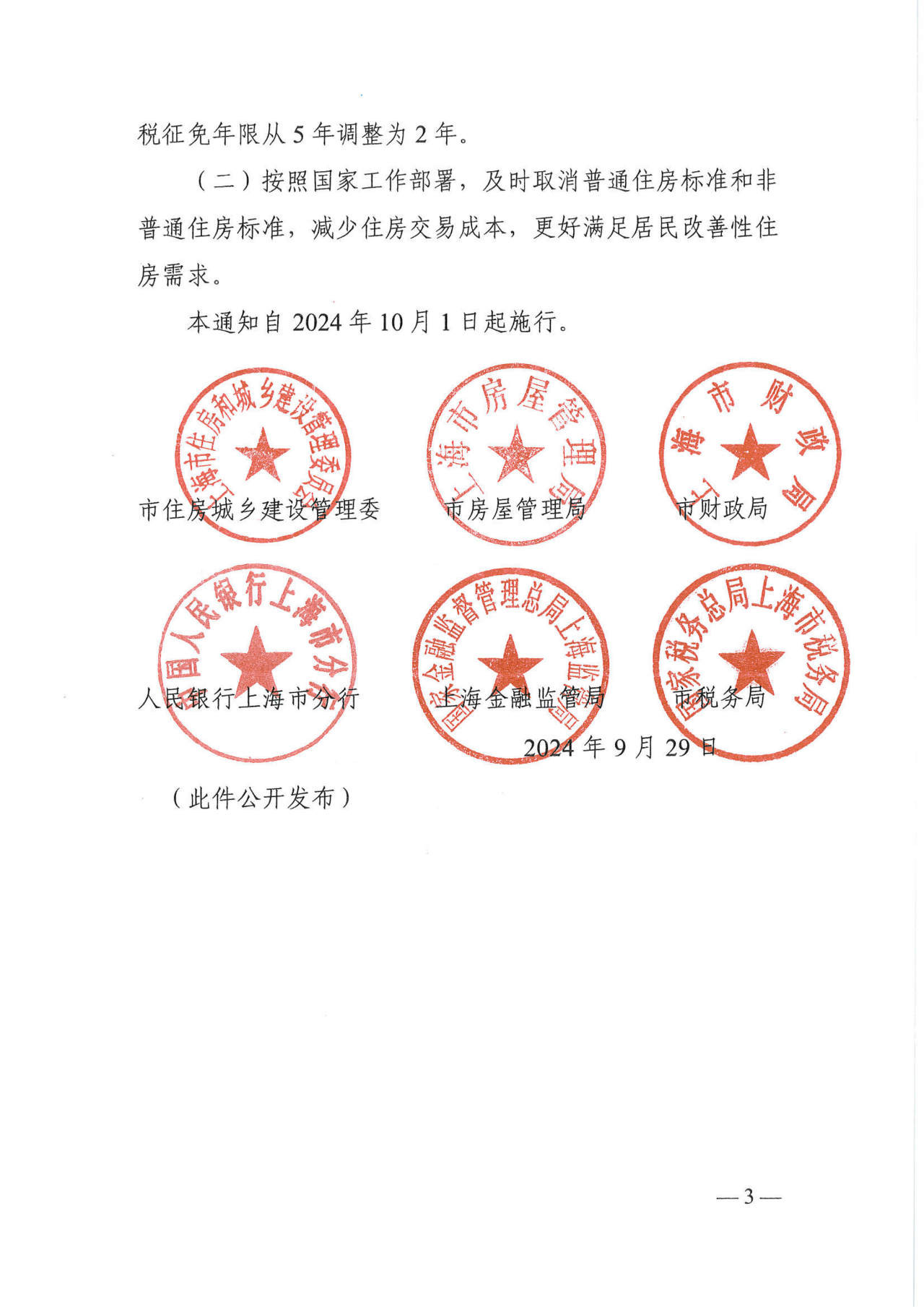 上海深入贯彻落实党中央、国务院决策部署,适应房地产市场供求关系的新变化,推动构建房地产发展新模式,加快建立租购并举的住房制度,加快构建房地产发展新模式,因城施策更好满足居民刚性住房需求和多样化改善性住房需求,促进房地产市场平稳健康发展。经市政府同意,9月29日,市住房城乡建设管理委、市房屋管理局、市财政局、市税务局、人民银行上海总部、上海金融监管局等六部门联合印发《关于进一步优化本市房地产市场政策措施的通知》(以下简称《通知》)。《通知》自2024年10月1日起施行。