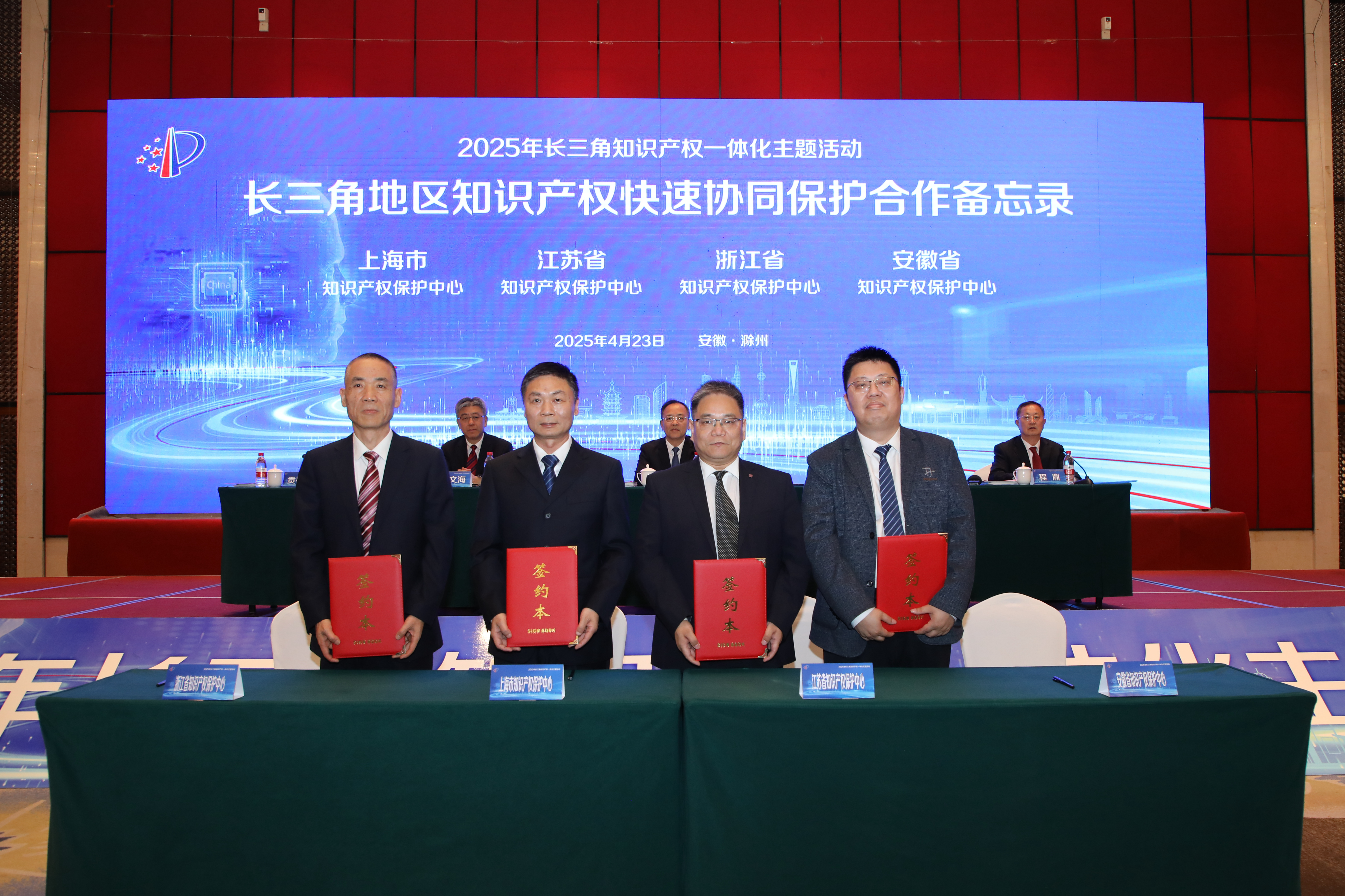 为加快形成长三角区域一体化的知识产权快速协同保护“生态圈”,发挥“一站式”保护综合效能,三省一市知识产权保护中心共同签署了《长三角地区知识产权快速协同保护合作备忘录》,将围绕建立快速预审服务联动机制、联合开展快速维权服务、开展专项信息分析研究、建立资源互通共享机制、开展宣传培训和业务研讨等五方面进行协同合作,共同服务保障新质生产力发展,更好推动落实长三角一体化发展国家战略。