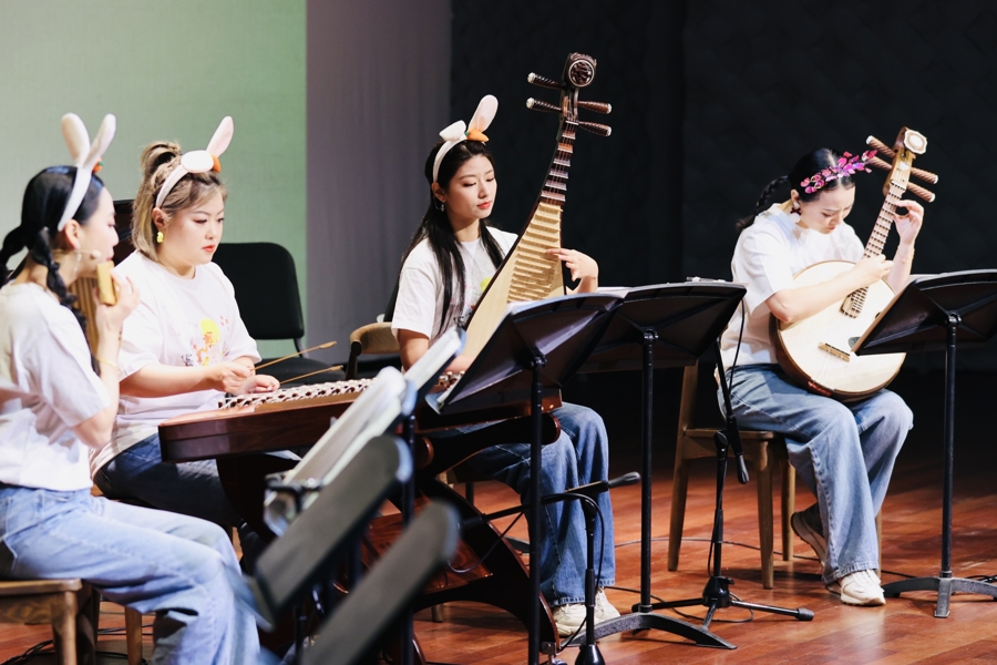 四只“小兔子”演奏琵琶、扬琴、阮和排箫。吕昊 摄
