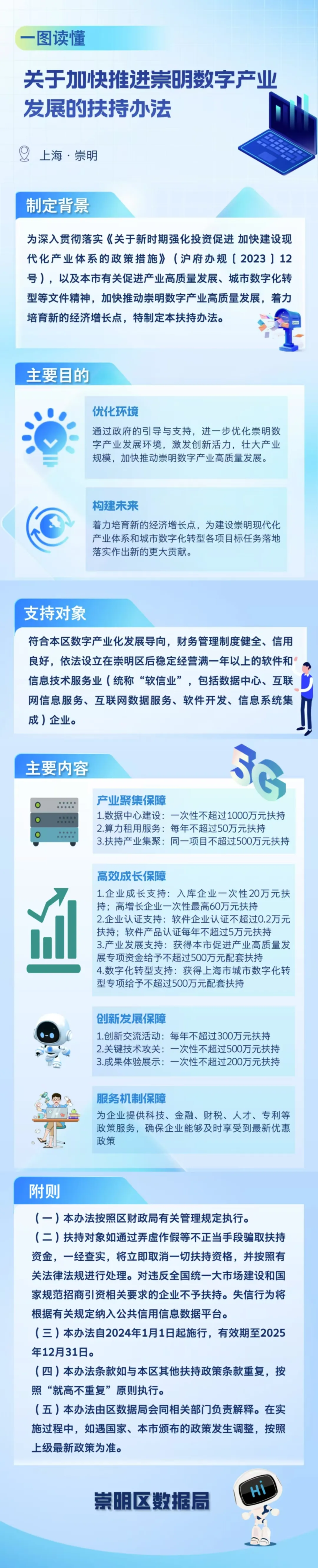 一图读懂《关于加快推进崇明数字产业发展的扶持办法》