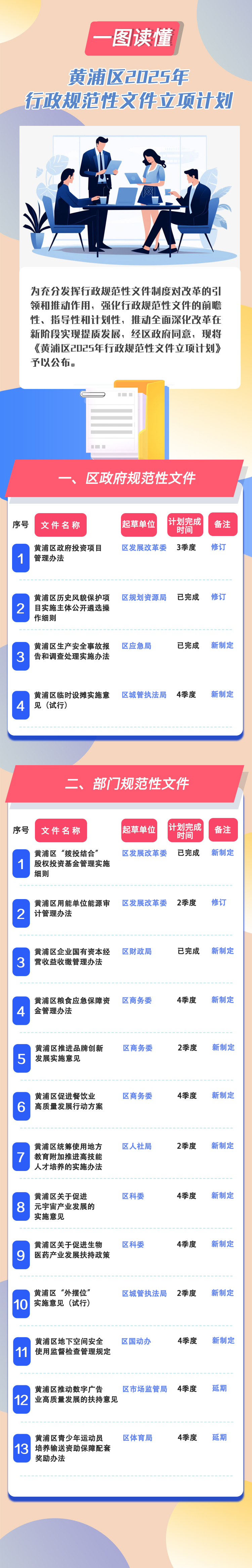 一图读懂《黄浦区2025年行政规范性文件立项计划》