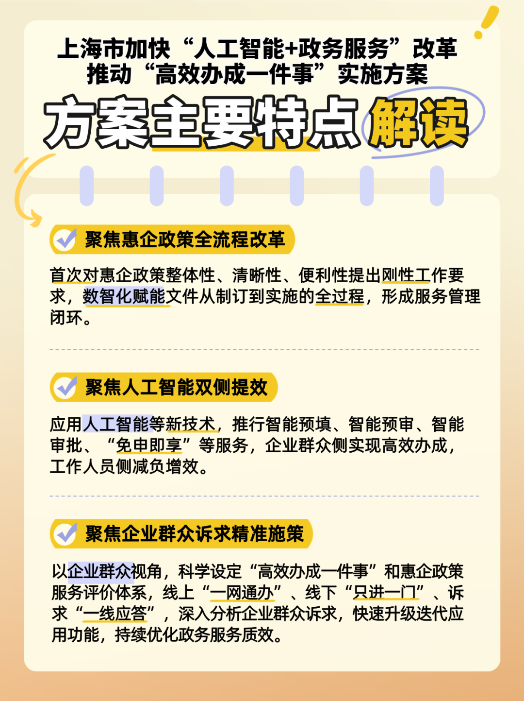 上海市加快“人工智能+政务服务”改革,推动“高效办成一件事”实施方案解读