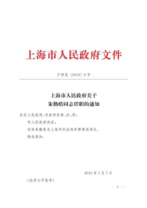 上海市人民政府关于朱勤皓同志任职的通知
