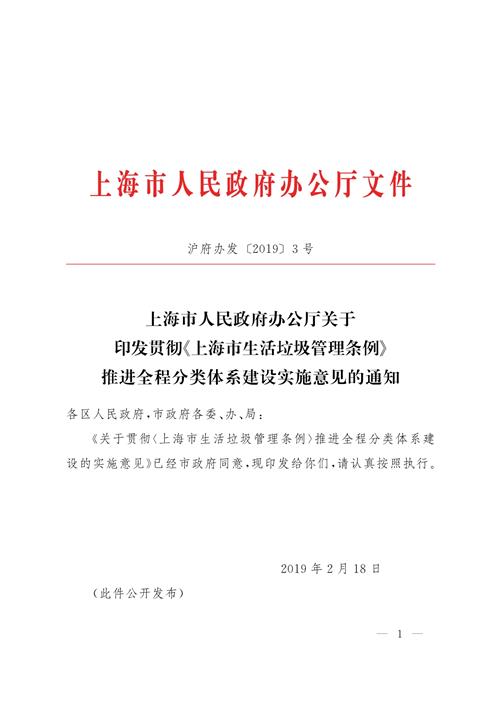 《关于贯彻〈上海市生活垃圾管理条例〉推进全程分类体系建设的实施意见》已经市政府同意,现印发给你们,请认真按照执行。