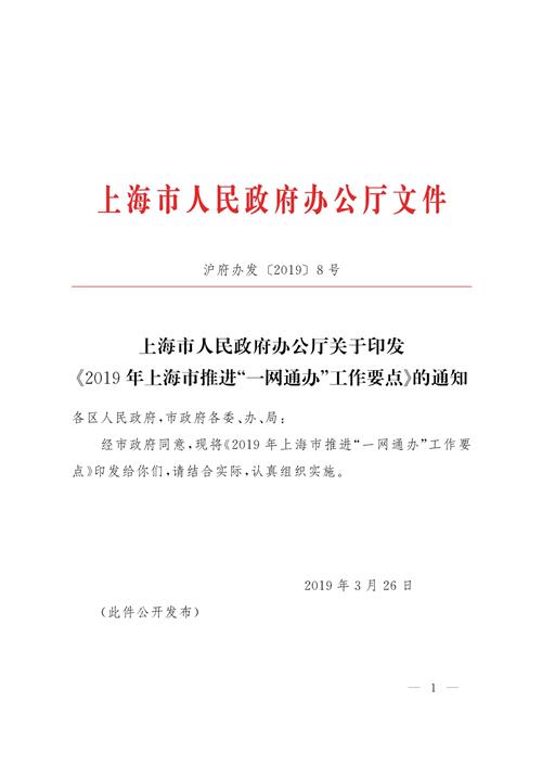 上海市人民政府办公厅关于印发《2019年上海市推进“一网通办”工作要点》的通知