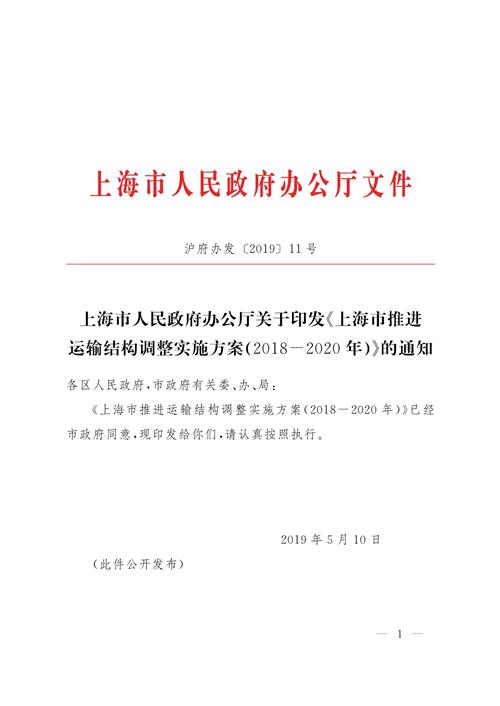 上海市人民政府办公厅关于印发《上海市推进运输结构调整实施方案(2018-2020年)》的通知
