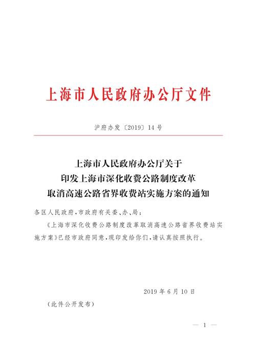 上海市人民政府办公厅关于印发上海市深化收费公路制度改革取消高速公路省界收费站实施方案的通知
