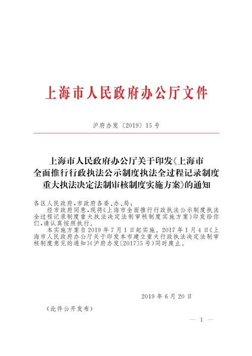 本实施方案自2019年7月1日起实施。2017年1月4日《上海市人民政府办公厅关于印发本市建立重大行政执法决定法制审核制度意见的通知》(沪府办发〔2017〕5号)同时废止。