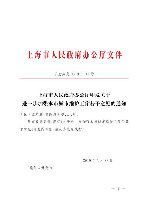 上海市人民政府办公厅印发关于进一步加强本市城市维护工作若干意见的通知