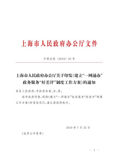 上海市人民政府办公厅关于印发《建立“一网通办”政务服务“好差评”制度工作方案》的通知